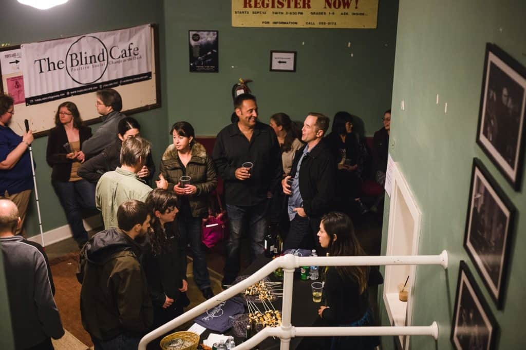 The Blind Café is a social impact organization that uses concept of social engagement in 100% darkness to create innovative and imaginative pop-up experiences that profoundly impacts people’s social perspective. They’re sponsored under the 501(c)3 of the Boulder County Arts Alliance, which is dedicated to providing professional development to the arts community through its programming and services.