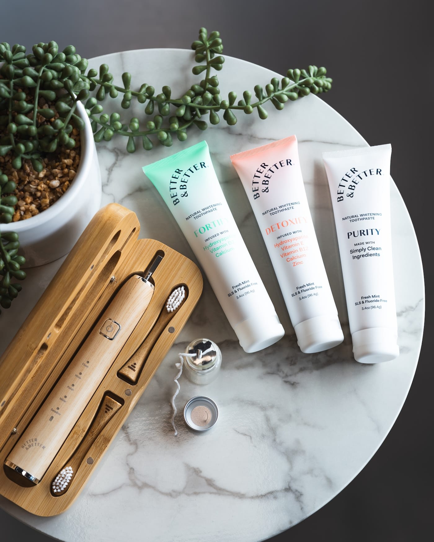 Beyond innovation in wellness, Better & Better is deeply committed to environmental responsibility, using recyclable, sugarcane-based packaging, bamboo toothbrushes, and naturally derived ingredients that are better for both people and the planet.