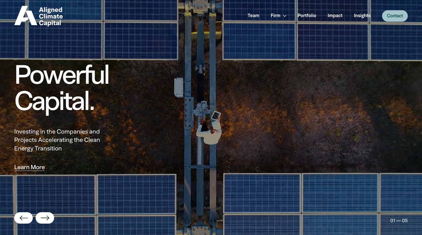 Guided by a vision in which the success of the firm, its investors, partners, and the planet are all aligned, Aligned Climate Capital is building a more sustainable and resilient future through strategic, impact-driven investments.