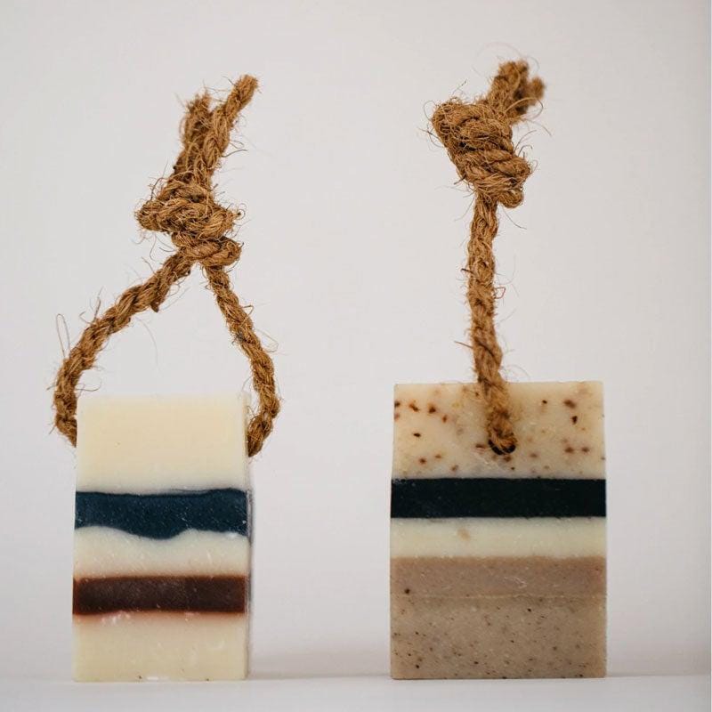 Inspired by the resilience of wild plants, these artisan-made Soap On A Rope provides a nourishing cleanse for your healthiest skin ever. This set includes two oversized soap bars: scrub soap on a rope for gentle exfoliation and nourishment, and soothe soap on a rope for a calming, regenerative lather.