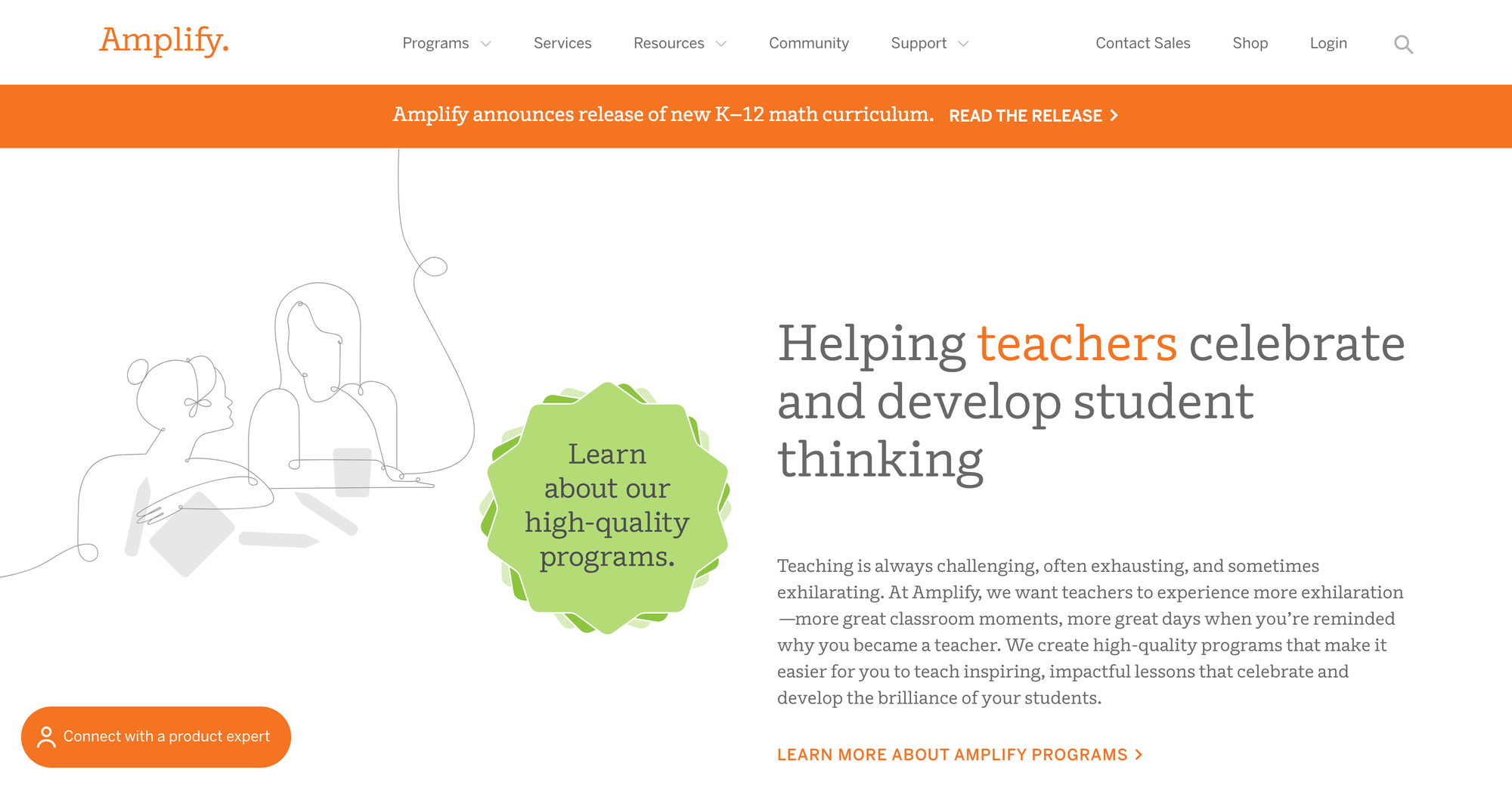 From the Science of Reading-based Amplify CKLA and personalized Boost Reading programs to hands-on Amplify Science and dynamic Amplify Desmos Math, our curricula foster critical thinking, literacy, and problem-solving skills.