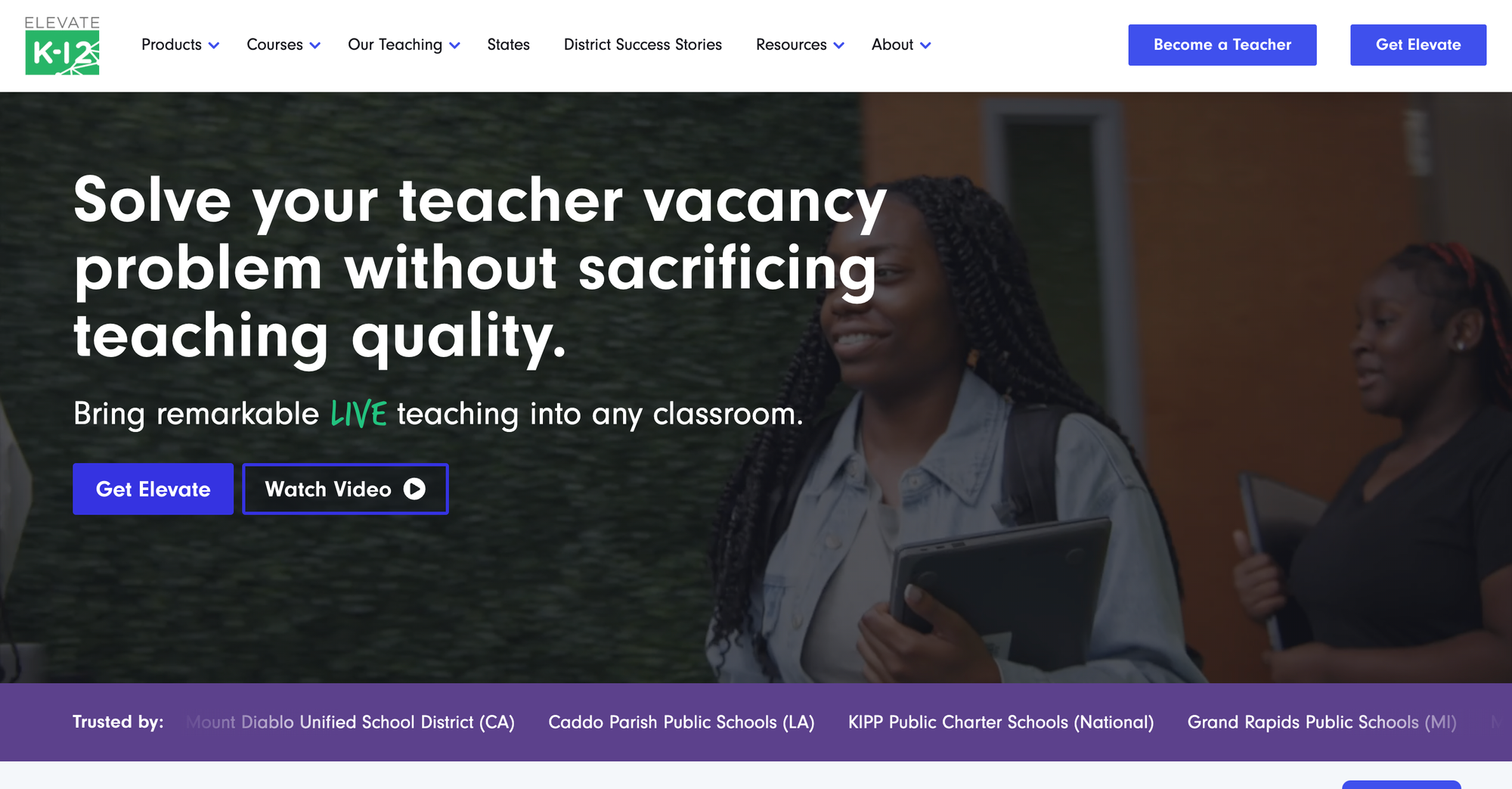 Elevate K-12 addresses the challenges of teacher shortages by delivering live, interactive instruction directly into classrooms. Certified educators teach in real-time, providing students with engaging lessons tailored to their needs.