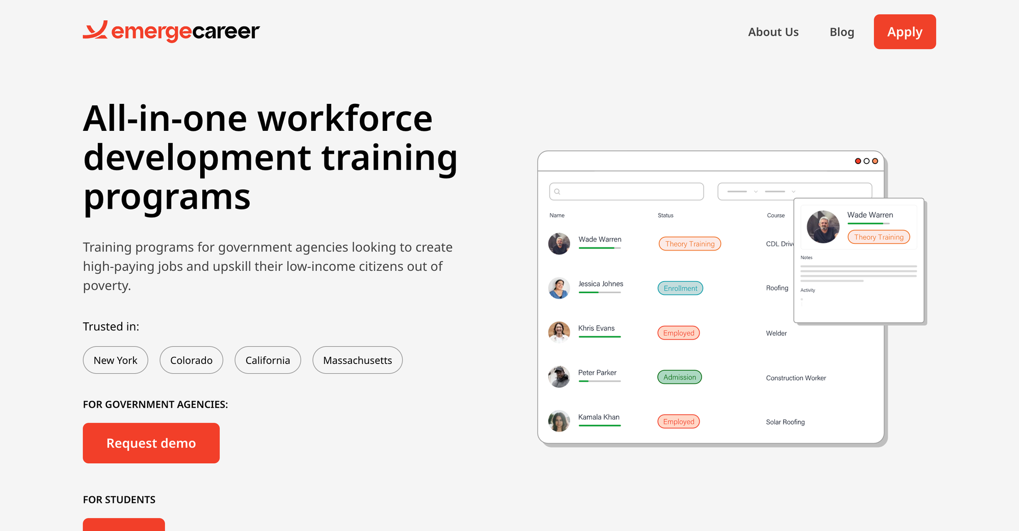 Emerge Career transforms workforce development by offering end-to-end training solutions for government agencies aiming to create high-paying jobs and upskill low-income citizens.