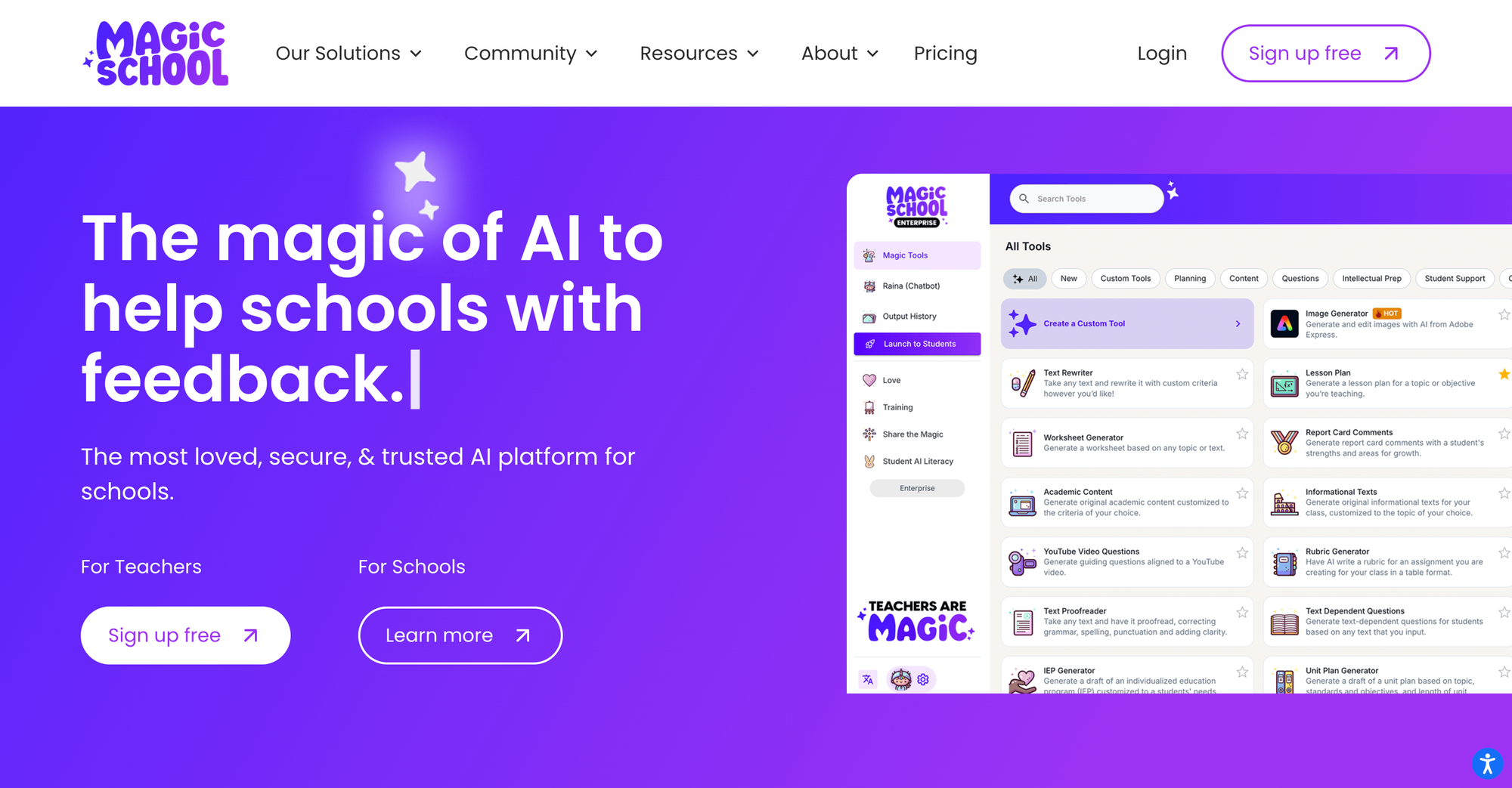 With robust tools built for responsible AI use, MagicSchool is the most comprehensive and secure platform for schools.