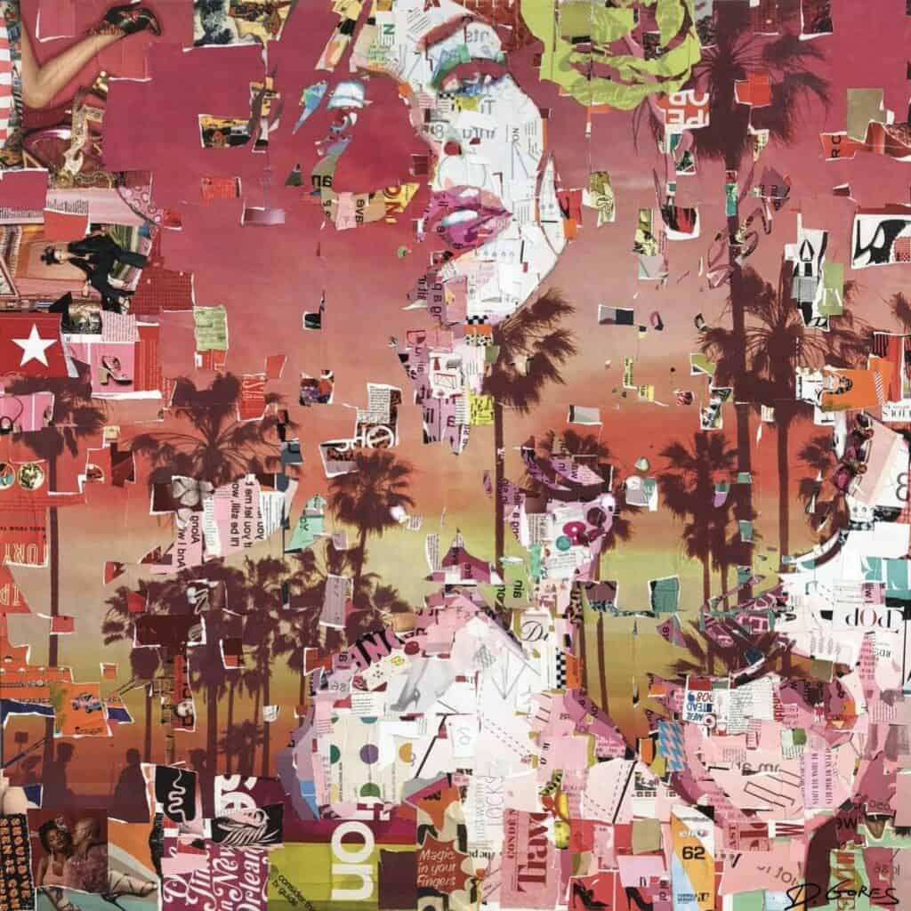 In his wild collage portraits, Derek Gores recycles magazines, labels, data, and assorted found analog and digital materials to create the works on canvas.