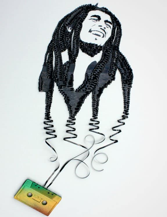 She specializes in using old cassette tapes to create incredibly artistic celebrity portraits, hoping that not everything which has outlived its use goes to waste. The artist is attracted to the idea of discovering new purposes for objects.Simmons makes portraits of people associated with the item she chooses – without adding any paint or pigments. The recycled artist uses materials such as sheet music, wine labels, money and, old cassette tapes. “It feels great to work with strange, older materials. Things that have a mind of their own. Most everything I use has been thrown away or donated at some point. Past its prime, like some of the finest things in the world.” – Erika Iris Simmons