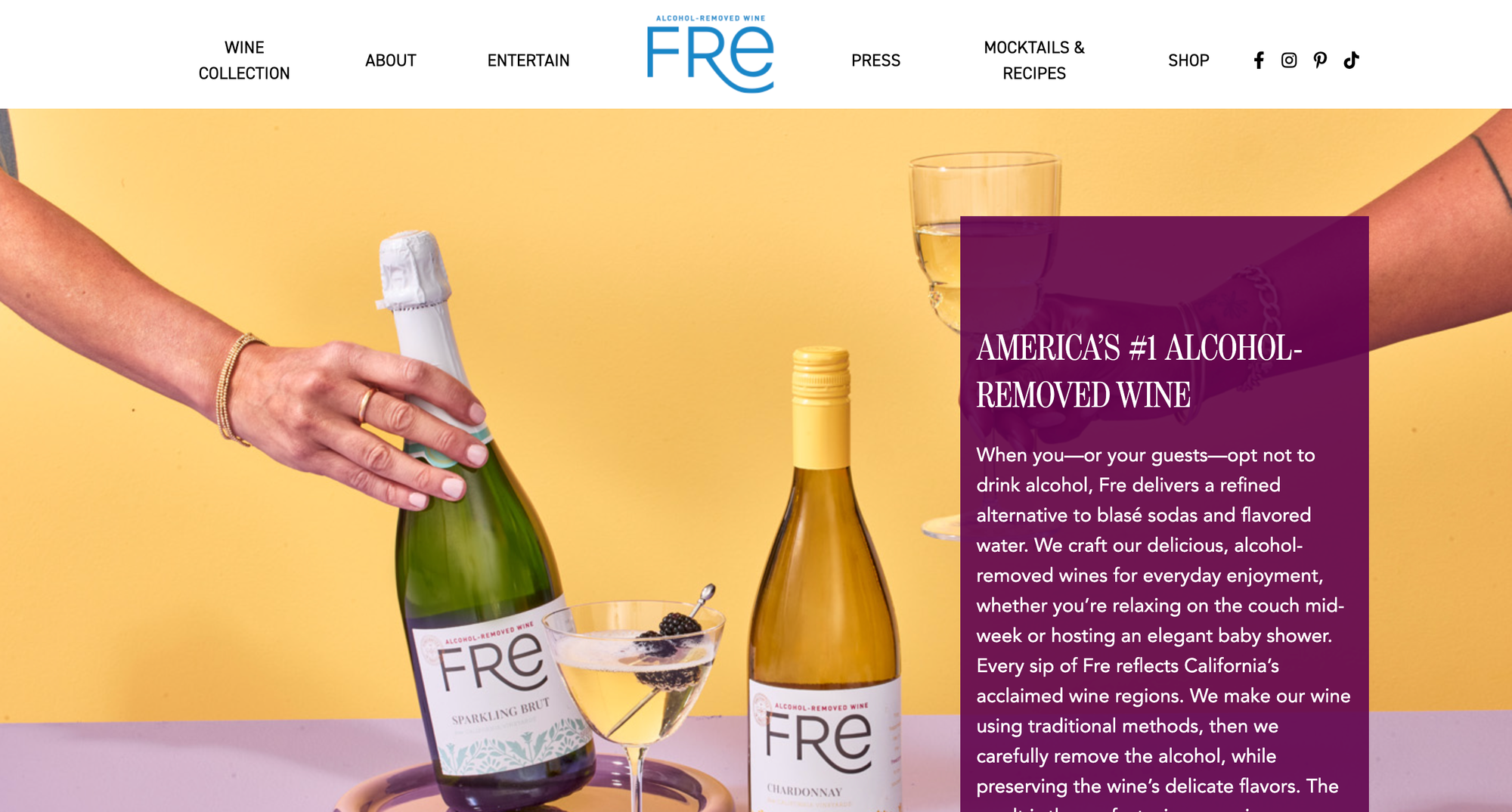 Fre is an alcohol-removed wine, offering a sophisticated alternative for those who choose not to drink alcohol. Whether enjoyed on a quiet evening at home or served at celebrations like baby showers and weddings, Fre provides an inclusive wine experience without compromise.