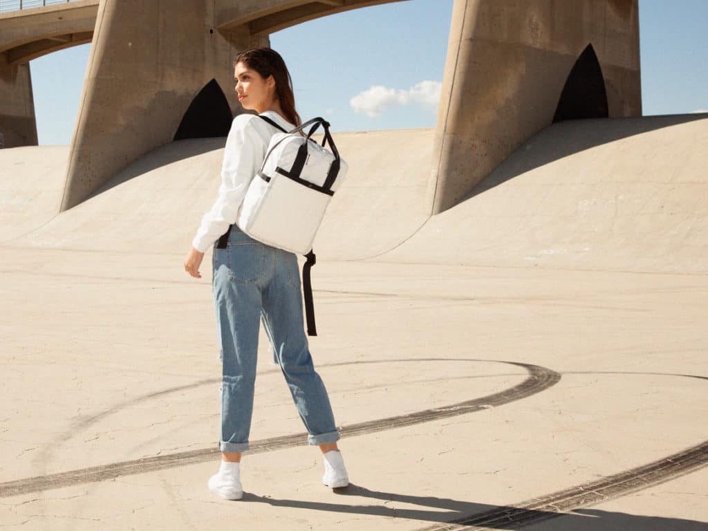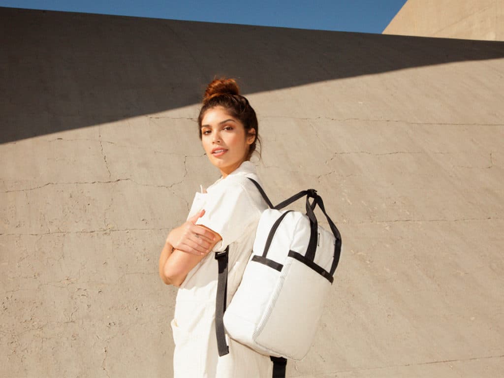 The mission was to design a product that was completely zero waste, giving the founders the challenge of not using ANY material that wasn’t previously trashed. Adhering to this rule was a technical challenge that took three months to design and prototype. Every bit is salvaged: body, lining, thread, cords, and all hardware elements! Rewilder flipped the design process, letting the materials dictate the design, rather than designing first and finding materials to fit.