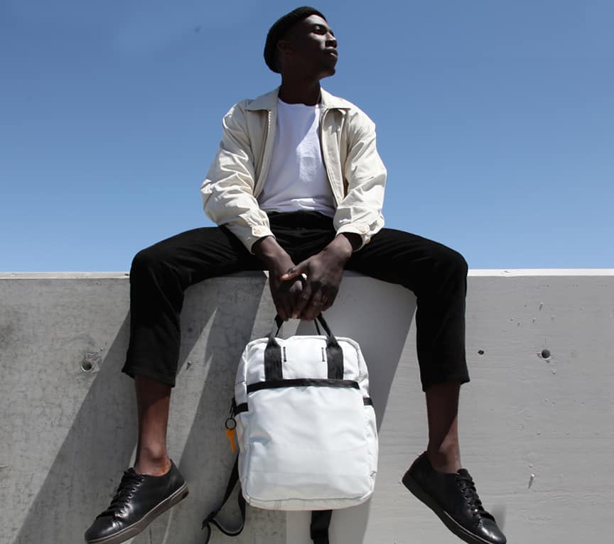 An airbag is a protective shell, built to be indestructible. Airbag material is high performance, lightweight, durable, waterproof, and surprisingly so beautiful. It has its own modern performance aesthetic and a unique textured graphic line pattern from its first life. Each backpack is unique because of this.