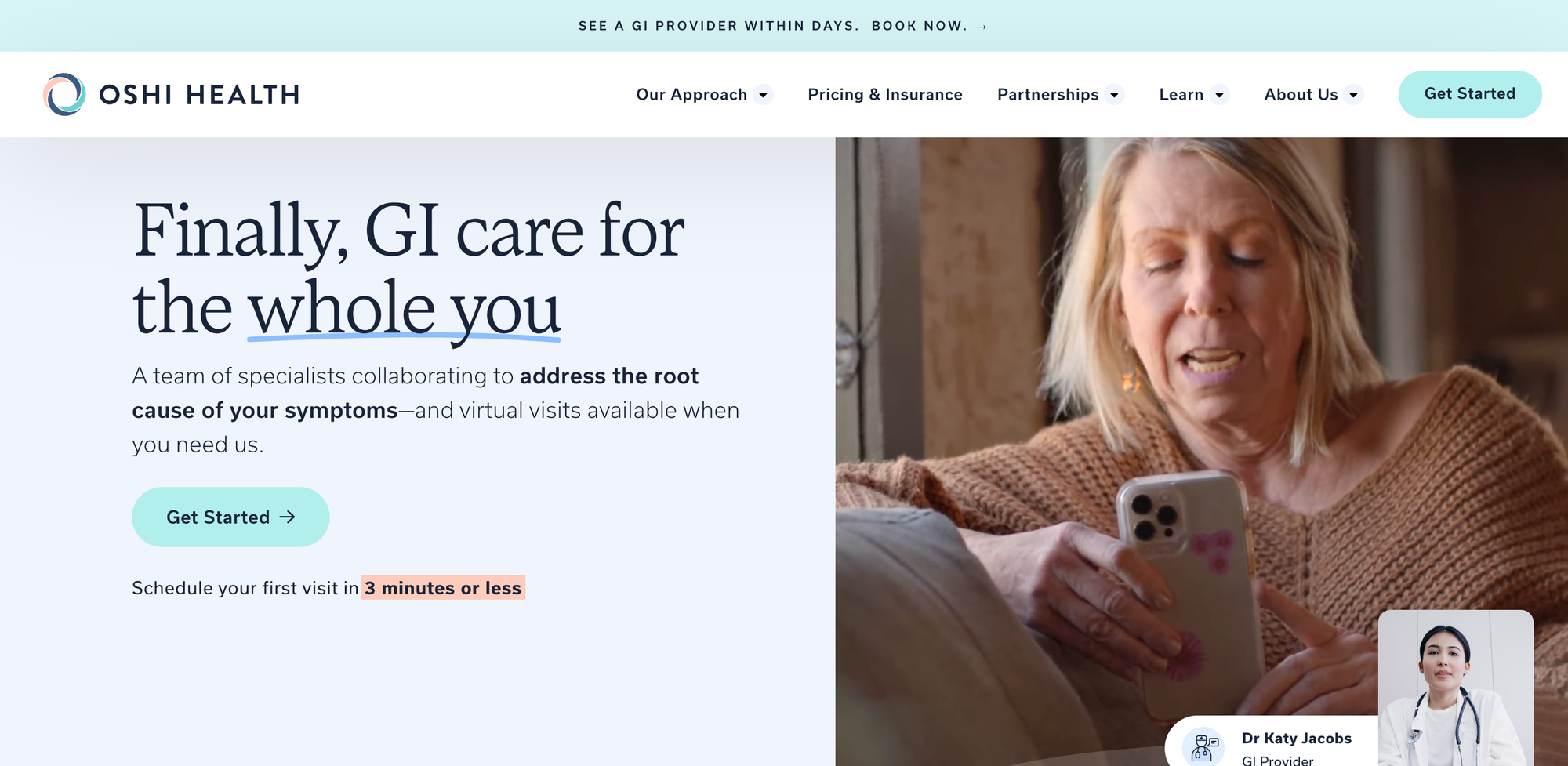 - Core Innovation: A virtual clinic dedicated to inflammatory bowel disease (IBD) care. Oshi provides integrated care from gastroenterologists, dietitians, and behavioral therapists through a comprehensive virtual platform.