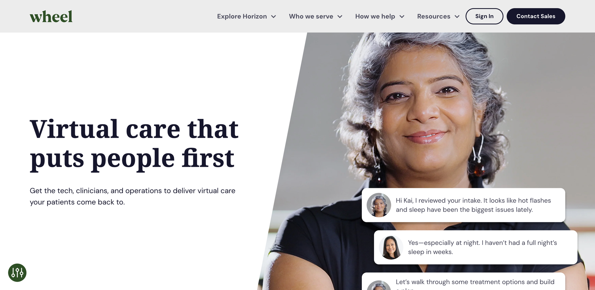 - Core Innovation: An asynchronous and synchronous virtual care platform that connects healthcare companies with a vetted network of clinicians. Wheel acts as the infrastructure for other companies to build their virtual care offerings.