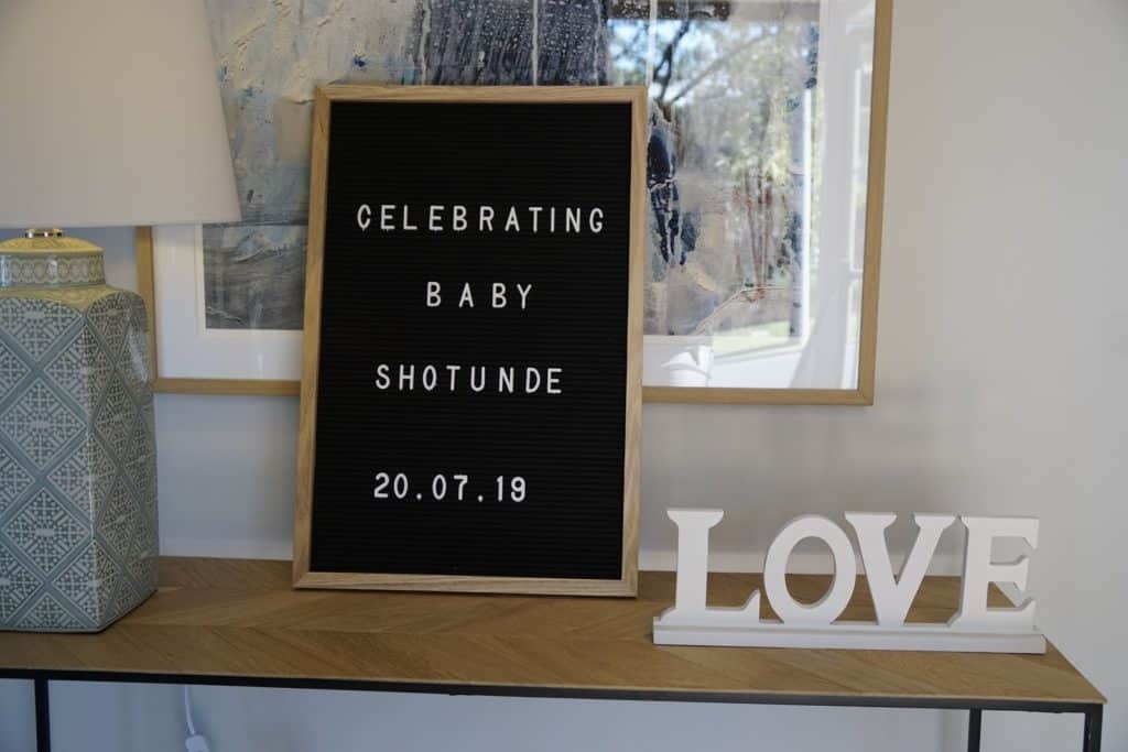 For me, I opted for less is more in the decorations department: art in frames, a cardboard ‘guess when the baby’s due’ game, flowers, message book, reusable letter board, ‘LOVE’ sign we already had and a photo frame of my partner and I as kids. The flower wall was a big feature, so the other smaller decorations just complimented that.