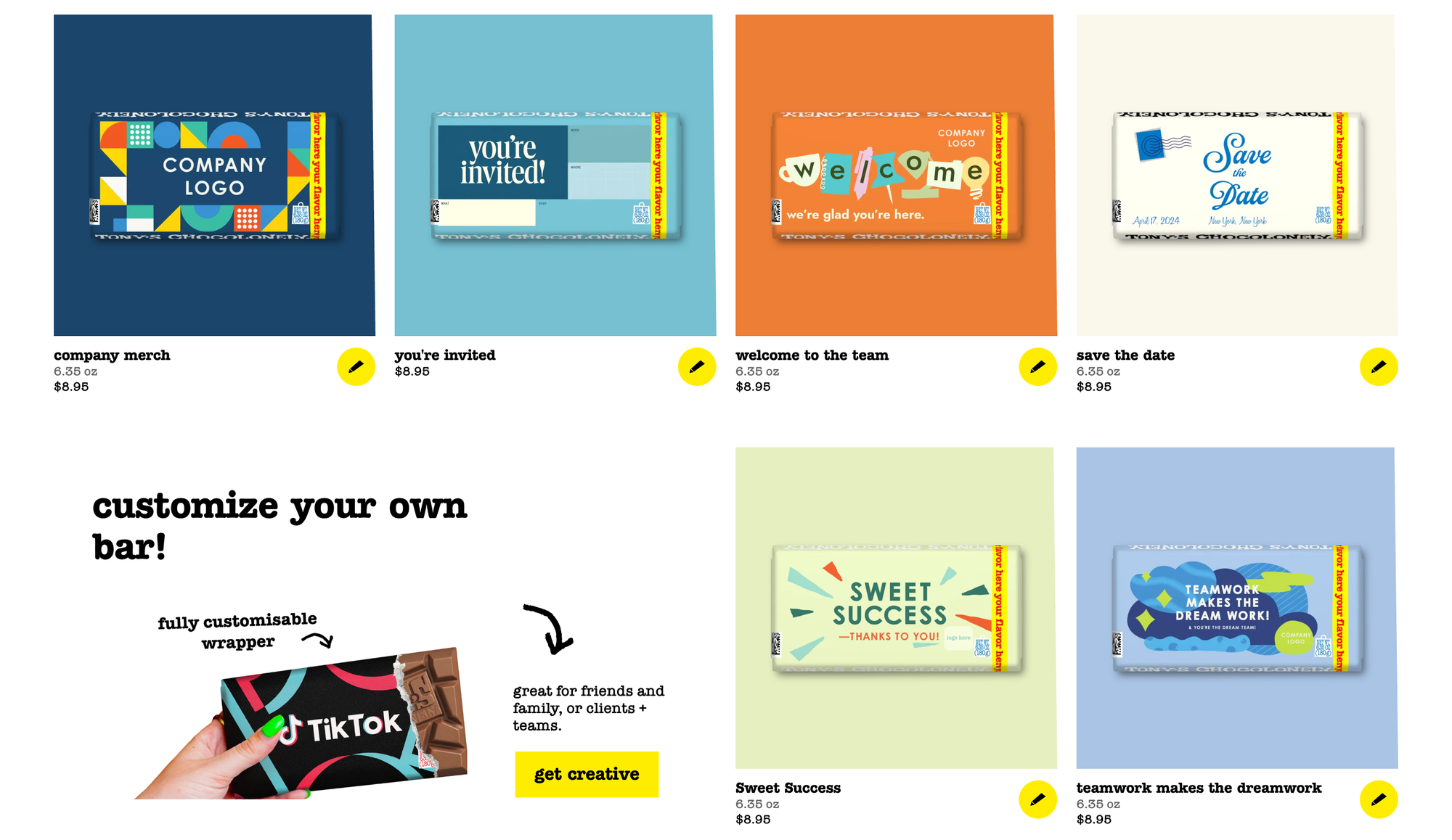 The company expanded beyond bars into related categories: chocolate-covered nuts and caramel products, seasonal gift boxes and limited editions, corporate gifting and custom bar programs, and co-branded products with partners like Ben & Jerry's ice cream.