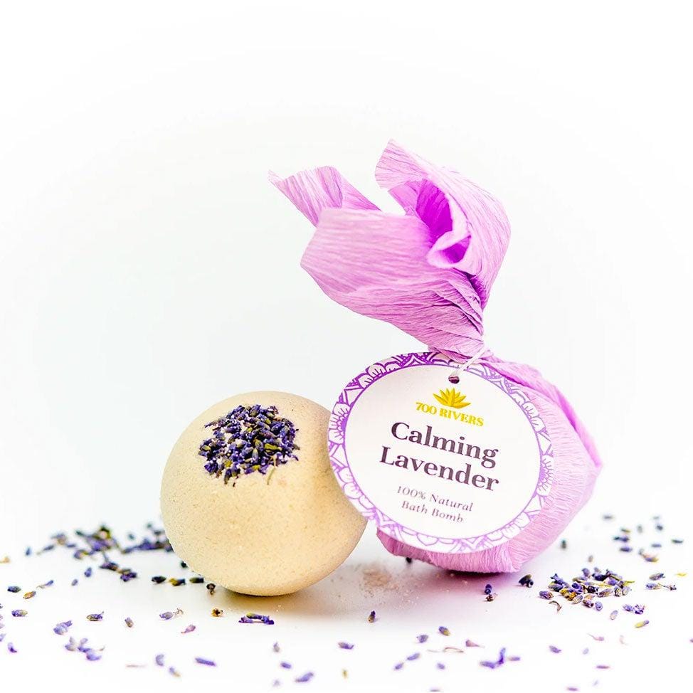 This bath bomb is made with 100% natural, skin-friendly ingredients and topped with lavender flower buds.