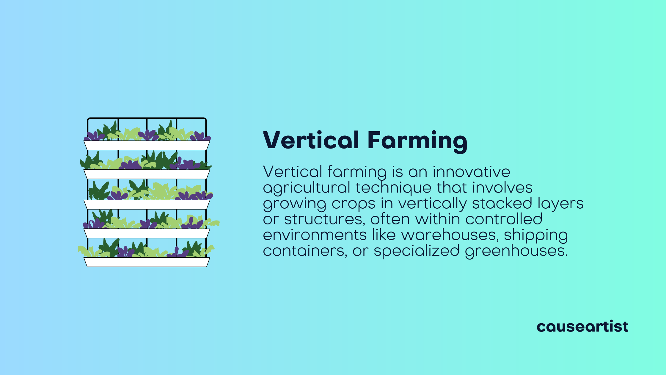 Vertical farming is an agricultural technique that involves growing crops in vertically stacked layers or structures, often within controlled environments like warehouses, shipping containers, or specialized greenhouses.