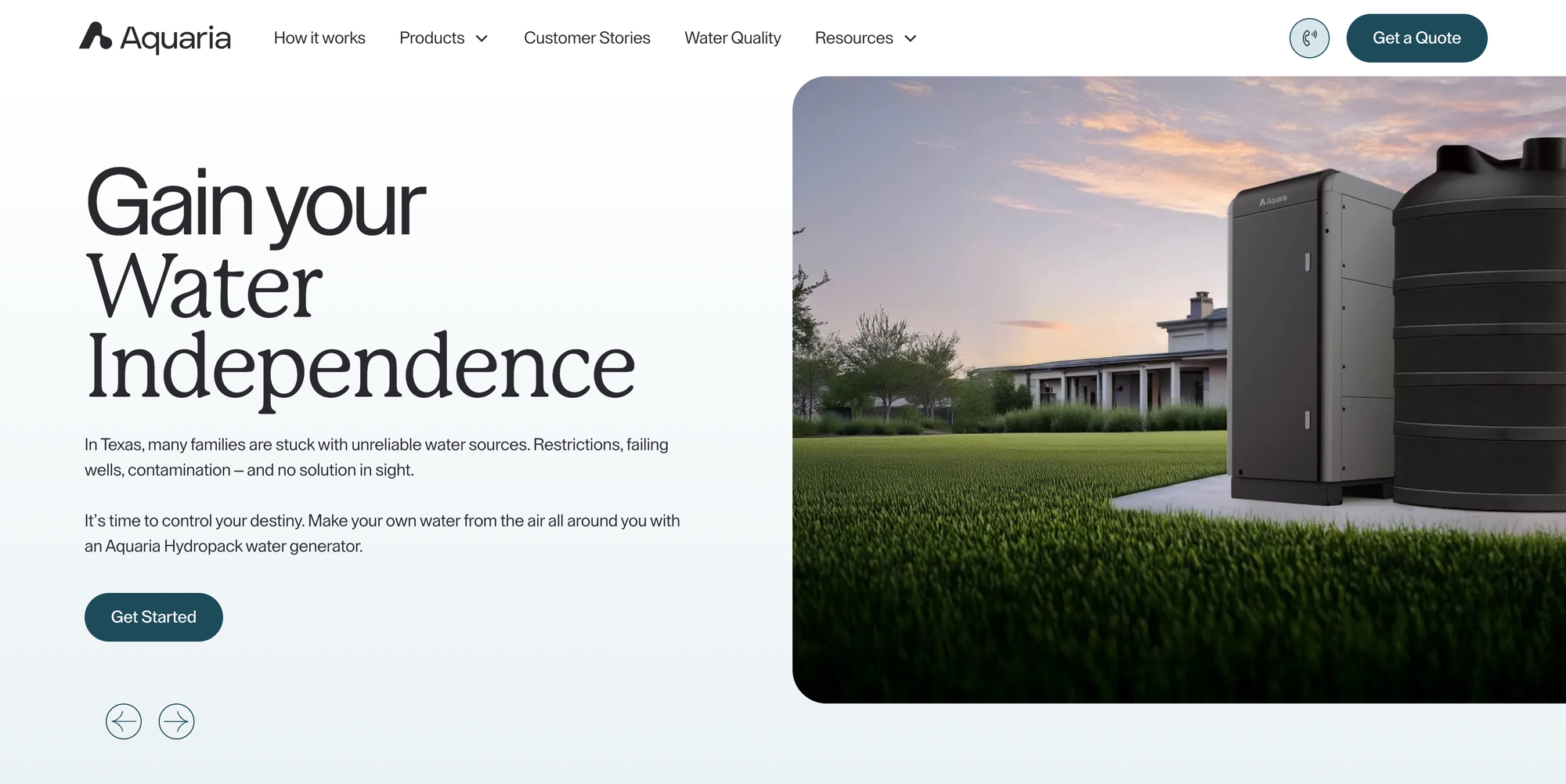 Impact: Aquaria is helping families and communities across Texas and the western United States achieve true water independence, replacing failing wells, eliminating plastic waste, and delivering sustainable, safe drinking water directly from the air.