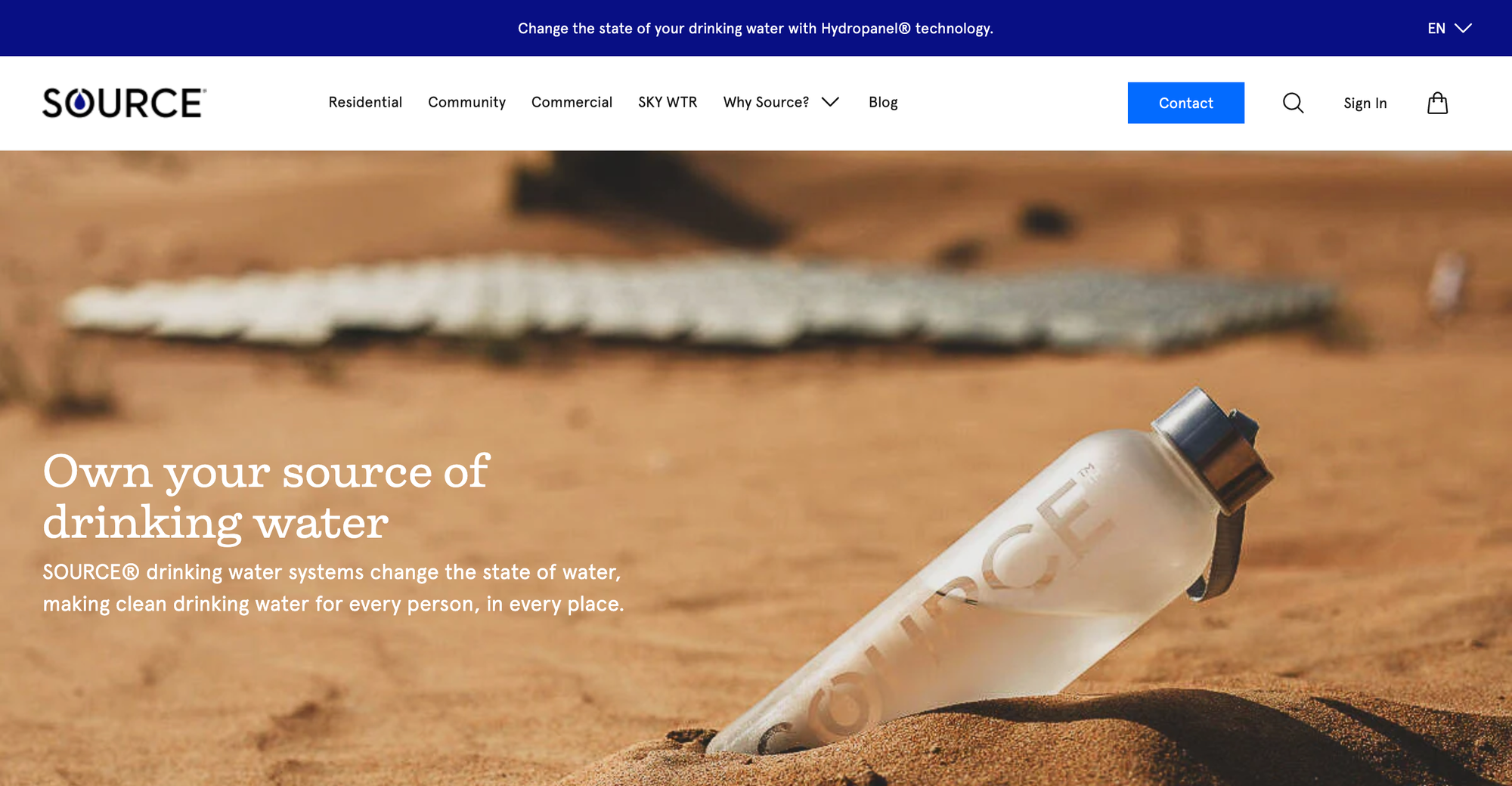 SOURCE Global turns air and sunlight into clean drinking water. Its patented hydropanel technology captures water vapor from the atmosphere and condenses it into pure, mineralized drinking water.
